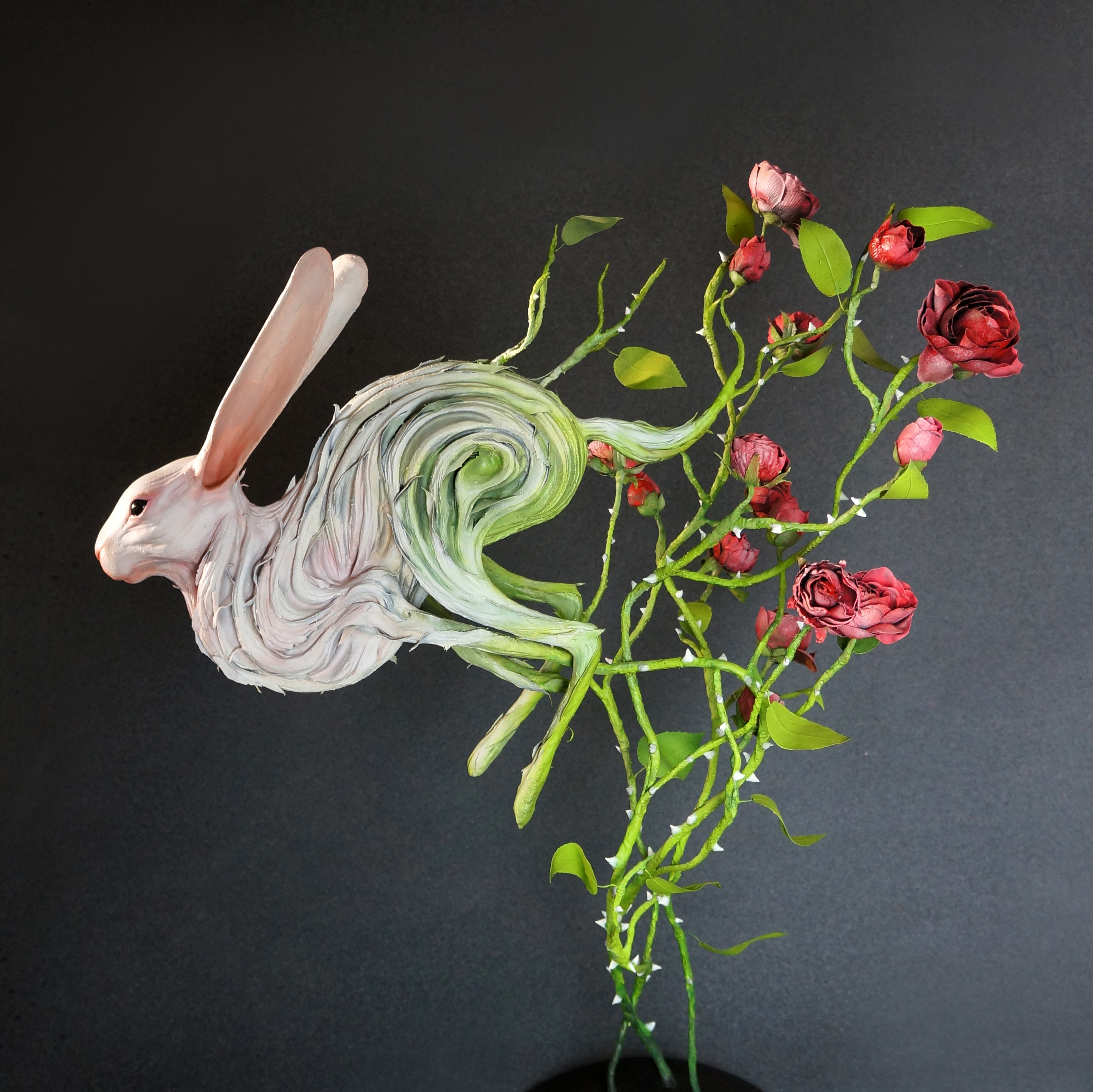 L'inspiration d'Astrid de Geuser puise sa source à la croisée de deux mondes : celui, tangible, de la Nature et du Vivant, et celui, infini et universel, de l'imaginaire collectif. C'est dans ce terreau commun nourri par les contes, les légendes, les histoires que naissent ses créations. Plasticienne, peintre et sculptrice, Astrid de Geuser élabore un écosystème où le végétal et l’animal se rencontrent, fusionnent, donnant naissance à des Êtres hybrides aux essences mêlées. Cette matrice narrative commune permet un éveil sensible chez le public, qui y décèle intuitivement des formes familières, révélant en lui un sentiment d'appartenance.