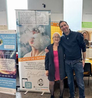 Depuis leur rencontre il y a un an, Philippe et Yolanda multiplient les occasions de pratiquer ensemble, notamment sur les salons. Ils proposent même une prestation commune : le bilan-soin-médium.
