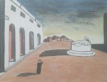 Reproduction du célèbre tableau "La mélancolie d’une belle journée" de De Chirico (1888-1978).